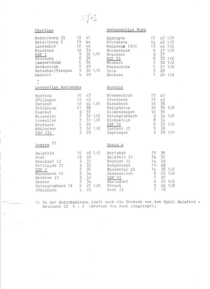 1972 | 1. Heidelberg 1879 2. Freiburger SF 1887 3. Karlsruher SF 1853 4. Heidelberg 1879 II 5. Seckenheim 6. Waldshut/Tiengen 7. Caissa Rastatt 8. Lampertheim 9. Pforzheim 10. Eppingen |