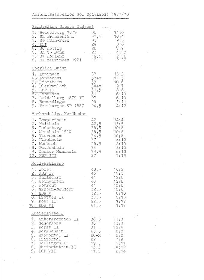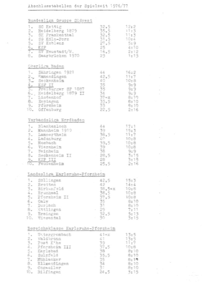Rastatt-Rheinau 2. Durmersheim 3. SK Rastatt 4. Zell a. H. 5. Forbach 6. Sasbach 7. Griesheim 8. Schutterwald 9. Caissa Rastatt 10. Lahr II |