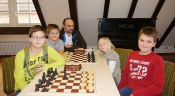 Am Samstag fanden sich in Ötigheim in Dachgeschoss der Alten Schule sieben Vierer- Mannschaften ein, um den mittelbadischen U12 Mannschaftsmeister zu ermitteln. Das Teilnehmerfeld war ausgesprochen gut besetzt, da sowohl Sasbach als auch Baden- Baden gute Teams ins Rennen schickten. Pro Spiel hatten die jungen Spieler jeweils 15 Minuten Zeit, und es wurden insgesamt sieben Runden gespielt, um den Meister zu ermitteln. Am Ende setzten sich die favorisierten Sasbacher durch und gewannen mit 11:1 Punkten souverän den Titel. In der letzten Runde spielte OSG Baden- Baden 2:2 gegen die Lenderdörfer und nahm ihnen noch den einzigen Mannschaftspunkt ab, was für die Kurstädter den zweiten Platz mit 9:3 Mannschaftspunkten bedeutete. Punktgleich mit Baden- Baden und nur 1,5 Brettpunkte zurück erreichte das Gastgeberteam aus Ötigheim einen sehr guten dritten Platz. Beste Spieler waren am ersten Brett Raphael Zimmer aus Sasbach mit der optimalen Punktzahl von 6 aus 6, vor Viktor Schulz von der OSG mit 5 aus 6 und Hans Wormuth aus Ötigheim. Am zweiten Brett waren Aaron Ahrendt aus Sasbach und Thorben Ochs aus Ötigheim mit 5 aus 6 die Besten. Stärkster Spieler am dritten Brett war Edward Schneider, Sasbach, mit 5 aus 6 vor Laszlo Kühn, Ötigheim, und Gabriel Liebmann, Bühlertal, mit 4,5 aus 6. Katharina Schneider aus Sasbach und Moritz Mack aus Hörden waren die Besten mit 5 aus 6 am vierten Brett vor Giro Ganjali aus Gernsbach mit 4 aus 6. Herzlichen Glückwunsch nach Sasbach zu dieser Meisterschaft.