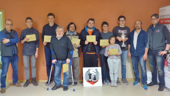 Ehmann und Gadzali waren nun am Ende mit 4,0 Zählern gleichauf vorne. Ein halber Buchholz-Punkt gab dann bei der Auswertung tatsächlich den Ausschlag zu Gunsten des Titelverteidigers. Thilo Ehmann hat damit den Pokal zum dritten mal hintereinander gewonnen, und darf ihn – nach unseren Turnierregeln – dauerhaft behalten.