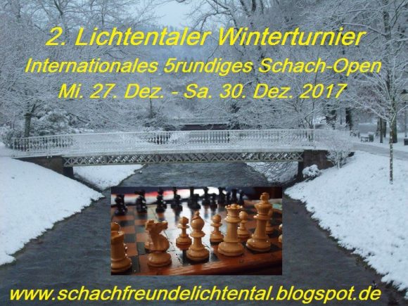 Warum in die Ferne schweifen, wenn das Gute nahe liegt. Es gibt viele Open zwischen Weihnachten und Neujahr, sei es beispielsweise in Böblingen oder in Erfurt. In der Regel Massenveranstaltungen, die mit einem hohen Startgeld, Fahrt- und Übernachtungskosten, schnell man einen Teil des Weihnachtsgeldes schlucken. Für ihre soziale Komponente und familiäre Atmosphäre sind die Schachfreunde Lichtental mittlerweile durch die hervorragende Austragung von Schachkongressen und Meisterschaften überregional bekannt. Grund genug für den Baden-Badener Multi-Kulti-Club nach einem Winter-Wertungsturnier im vergangenen Jahr, nun erstmals zu einem Internationalen Winter-Open von Mi. 27. – Sa. 30. Dezember 2017 einzuladen.