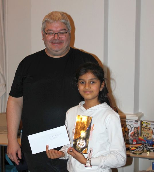Für das B-Open wagte keiner einen Tipp. Unser Sommeropen gewann bereits ein Spieler ohne DWZ. Dieses Mal führten nach vier Runden sogar drei Spieler ohne das Feld an. Das direkte Duell der Führenden gewann Luis Braun vom SC Ottenhöfen-Seebach und damit den ersten Platz mit 5 Punkten aus 5 Partien! Colin Gentner von den Schachfreunden Wiesental erreichte den zweiten Platz mit 4,5 Punkten. Der erst 8-jährige Albert Breaz verlor zwar die Spitzenpaarung, aber die beste Gegnerwertung bedeutete Rang drei. Bestes Mädchen und Gesamtbeste U10 wurde Rithika Nehrukumar vom SK Freiburg-Zähringen. Auch für die OSG gab es neben dem A-Open Sieg von Arash noch erfreuliches im B-Open. Gabriel Cretu gewann die U12 und Kirill Leonhardt die U14 Wertung. Neumühl gewann den Teampreis und Artur Breaz im B und Theo Müller im A noch einen Sonderpreis als jüngste Teilnehmer, denn mit sechs bzw. acht Jahren gehört schon viel Mut dazu sich oft doppelt so alten Gegnern zu stellen.Ela-Marie Kuebart – Bestes Maedchen A-Open