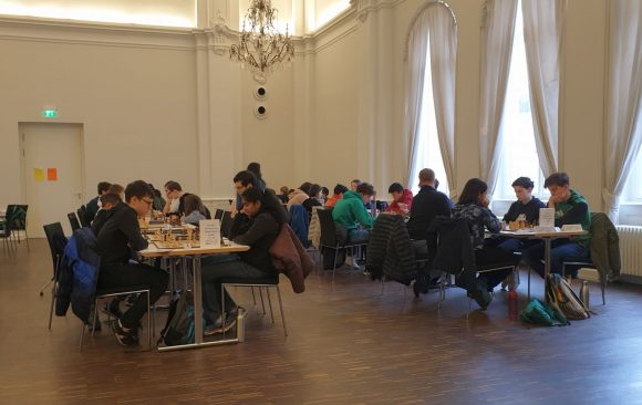 Am 16.+17.12.2023 veranstaltete die OSG Baden-Baden im Kristallsaal ein weiteres Jugendturnier mit DWZ-Auswertung. Aufgeteilt in A- und B-Open trafen sich knapp 60 Jugendliche aus nah und fern, um sowohl um Pokale und Preise als auch um begehrte Wertungspunkte zu kämpfen. Unser gewohntes Organisationsteam wurde unterstützt durch den internationalen Schiedsrichter Michael Rütten, der souverän und ohne Zwischenfälle das Turnier leitete. Blick in den Kristallsaal