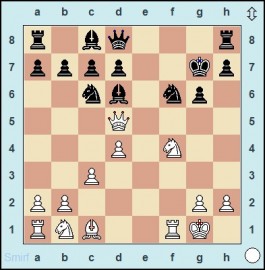 sofort.}) 17. Qg6+ Rf7 18. Bxf6 Ne7 19. Qh5 Bxh2+ 20. Kxh2 d5 21. Nd2 Qd6+ 22.