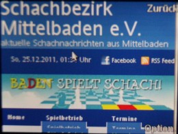 Immer auf dem Laufenden bleiben, ob zu Hause am PC oder unterwegs mit dem „Mobile-Smartphone-Device“, formerly known as „Handy“! Mit der Installation neuer Erweiterungsmodule erreichen Schachnews aus Mittelbaden noch schneller als bisher die interessierte Öffentlichkeit. Via Twitter erscheinen kurze Nachrichten künftig – sofern vorhanden – im Info-Kasten „Miba-Getwitter“ in der rechten Navigationsleiste. Die Inhalte des kompletten Internet-Angebotes sollen für alle gängigen mobilen Endgeräte optimiert die (unterschiedlichen) Maße der Displays – augenfreundlich – berücksichtigen. Der „Elchtest“ mit einem Standardmodell von Sony-Ericsson verlief positiv und wird im Bildausschnitt dokumentiert. Weiteres Feedback der geneigten Leserschaft an den Webmaster wäre hilfreich und würde auf Wunsch – na was wohl – getwittert. (Gerhard Gorges, Webmaster)