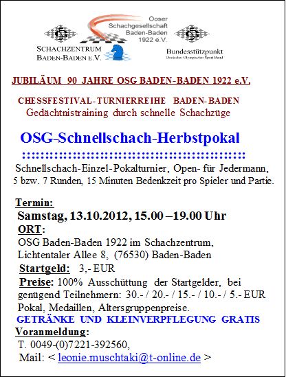 Sie befinden sich hier : Schachbezirk Mittelbaden e.V. » Allgemein » OSG-Herbstpokal