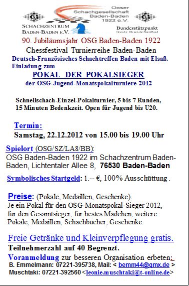 Einladung zum POKAL DER POKALSIEGER der OSG-Jugend-Monatspokalturniere 2012
