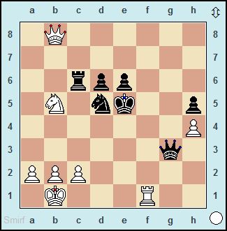Bohnert – Prof. Wiedemann: Weiß krönt seine Jagd auf den König mit Matt in vier (in der Partie hilfsweise in zwei Zügen) |