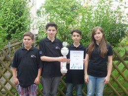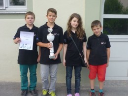 Die U14 war mit Olga Weis, Felix Bossert, Jonas Jurga und Benjamin Schuster in Bestbesetzung angetreten, die schon die Bad. Meisterschaften in Ettlingen dominiert hatte. Hier kam die Konkurrenz eher von württembergischer Seite. Zwei Auftaktsiegen gegen Sasbach und Schwäbisch Gmünd folgten 2 Unentschieden gegen Karlsruhe und Hohentübingen. In der letzten Runde ging es gegen die bis dahin verlustpunktfreie Mannschaft von Stuttgart-Wolfsbusch. An allen Brettern war der Siegeswille durch konzentrierten Partieaufbau spürbar. Obwohl sich Olga in einem langen Match Magnus Kuhn an Brett 1 geschlagen geben musste, gelang mit 2,5:1,5 ein knapper Sieg, der bei Punktgleichkeit, aber einem Brettpunkt mehr, die Baden-Württembergische Meisterschaft bedeutete. Jonas waren an Brett drei 5 Siege gelungen.