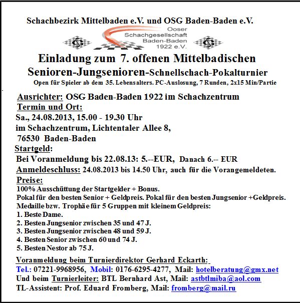 Ausrichter und Ort: Schachbezirk Mittelbaden, OSG Baden-Baden 1922 im Schachzentrum,